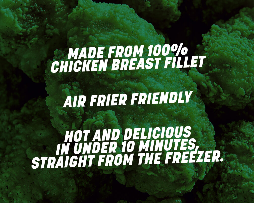 Bold 'n juicy chicken breast fillet chunks generously coated in a hot 'n spicy crumb.