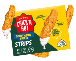 Golden 'n crispy chicken breast fillet strips with a southern fried style coating.